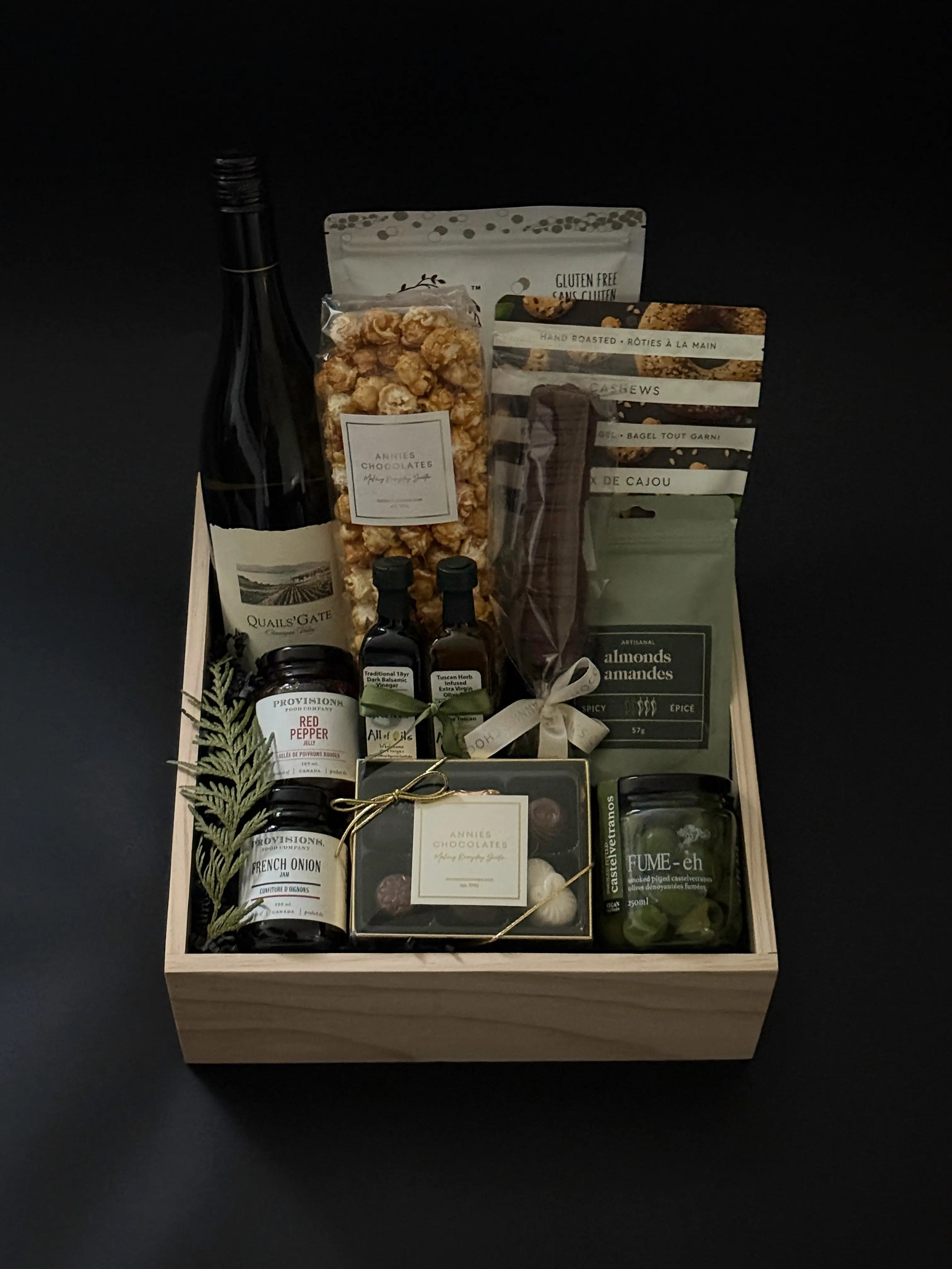 Crafted for fuller, more generous curations, this spacious format accommodates 7 to 12 premium items. Ideal for wine pairings, gourmet feasts, or celebratory gifts that call for an unboxing experience as rich as the contents inside. Only available for Delivery in the Lower Mainland.